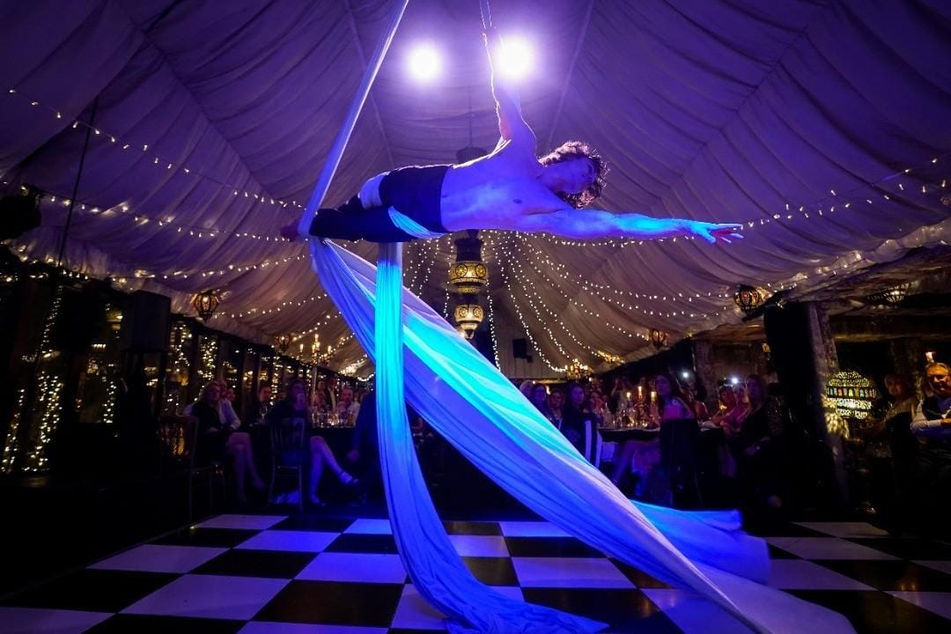 Celestial Pas De Deux, aka Luke & Viktorija, is a performance artist duo that specializes in a variety of solo and duo skills. Viktorija is trained in ballet, aerial contortion, aerial hoop, moon, and silks. Luke specializes in Cyr wheel, cube manipulation, and straps. Together, they perform ballet, adagio, silks, and straps routines that will leave you in awe.